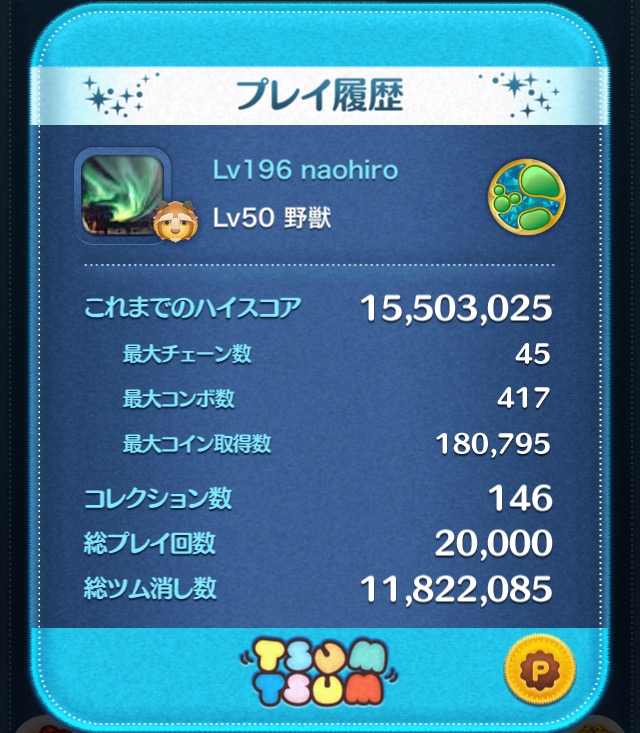 プレイ回数が2万回に到達しました。