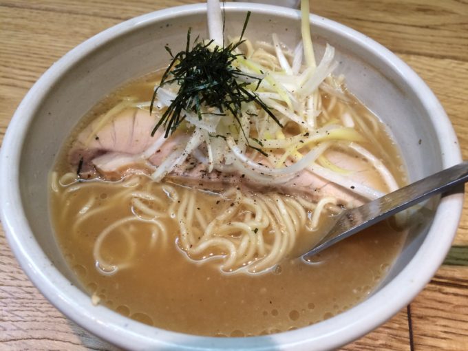 ブルックリン ニューヨークからの逆輸入ラーメン店。「YUJI RAMEN」のツナコツラーメンを注文。麺は細麺。スープはマグロのアラで作ったツナコツスープ。スパイスで柚子胡椒が結構効いててピリ辛。これは超美味い!また食べたい♫